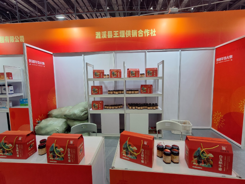 本届供销年货大集以“逛供销大集 享皖美新年”为主题。濉溪县供销社本着为农、惠民的宗旨,遴选县供销系统内四家产品独特、品质优质的村级供销合作社及合作企业参加安徽供销年货大集活动。在此次供销大集淮北展区,濉溪县共设展位4个,展出近十种优质农副产品、特色小吃、年货商品。其中濉溪县五沟镇欣田供销社合作社展出了集中规模种植的糯玉米、水果玉米以及原创品牌“自留地”花青素面粉等3个品种;濉溪县王堰村供销合作社展出了手工磨制的芝麻香油、白玉蜗牛酱等2个品种;开放办社企业淮北金之田展出了原创品牌“顺军”黑糯玉米;旭源食品带来速食羊油烫面、红油面皮等濉溪特产。