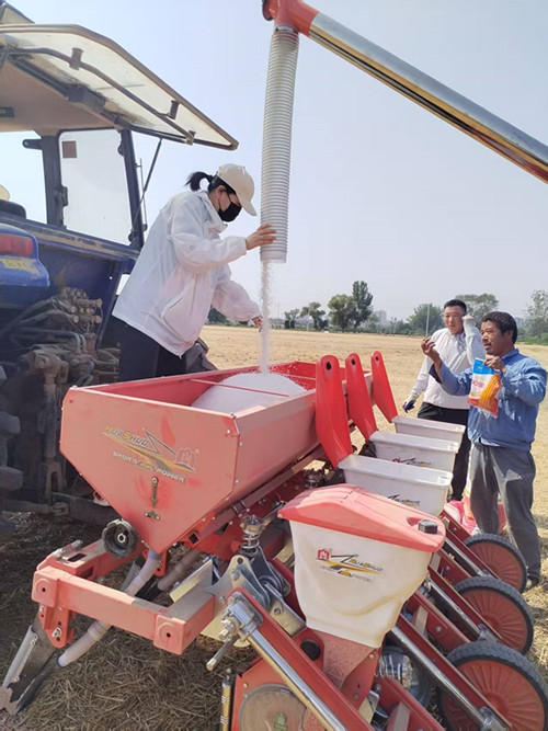 在高岳办事处韩楼村,对淮北市供销农服公司夏种一线的工作人员进行慰问,并送去纯净水、方便面、毛巾等物品。来到田间地头,帮助农民播种玉米,用实际行动助力夏种。