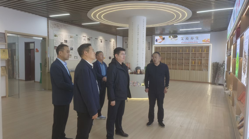 在草庙村艾乡工坊,陈健一行首先到艾草种植基地,详细询问艾草品种选育、种植规模、田间管理及采收加工等情况。随后,走进企业生产车间,观看艾草从晾晒、粉碎到艾条卷制、艾绒提取的全流程生产线。