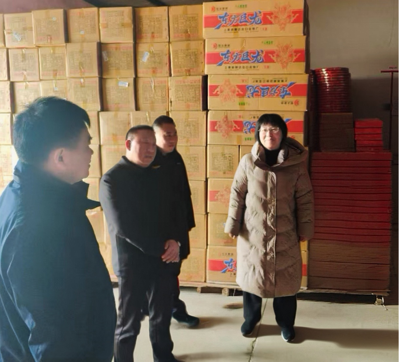 2月5日,濉溪县副县长涂小丽深入濉溪县韶美烟花爆竹公司督查烟花爆竹安全经营工作,通过听取汇报、实地查看、现场询问等方式,详细了解烟花爆竹安全经营情况。她指出,春节将至,烟花爆竹经营进入高峰阶段,也是安全风险易发、高发期,公司要强化“红线”安全意识,严格执行烟花爆竹安全经营管理规定,全面落实岗位责任制,规范安全经营;县供销社作为行业主管部门要认真履行监管职责,加强与公安、应急等部门密切合作,全力做好烟花爆竹安全经营工作,保障全县人民过一个平安祥和的春节。