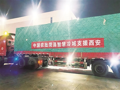 1月2日凌晨,中国供销农产品批发市场控股有限公司菏泽智慧冷城3辆装载着数万斤新鲜蔬菜的车辆从山东省菏泽市启程,星夜驰援陕西西安。